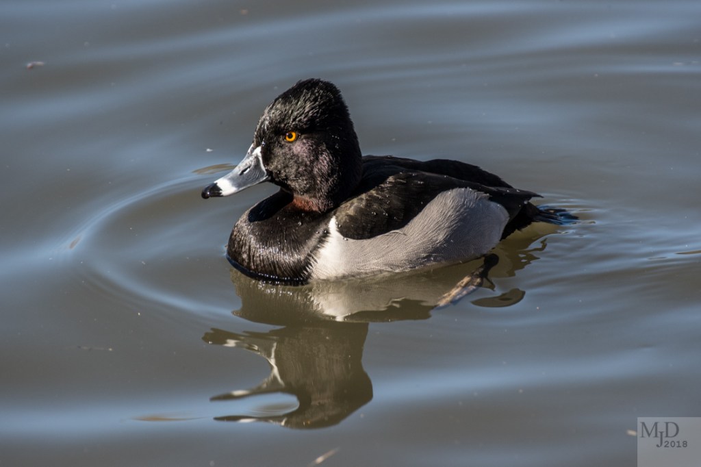 There were pictures of Ring-necked Ducks in my last post and they have been in previous posts as well. I often note that they should be called Ring-billed Ducks since the rings on their bills are so obvious. So why “Ring-necked”? I can’t quote a source so this is my opinion. Many birds were originally described using dead specimens. There is a ring on the Ring-billed Duck but it is only obvious upon close inspection or in just the right conditions. This photo was taken in New Mexico in 2018 at a man-made pond on a college campus. The pond attracted a very large number of wild and domestic ducks. This duck swam close enough for a photograph in good light. The ring is barely visible as a reddish-brown line at the base of the neck. So the ring is there but I still think Ring-billed is much more appropriate.