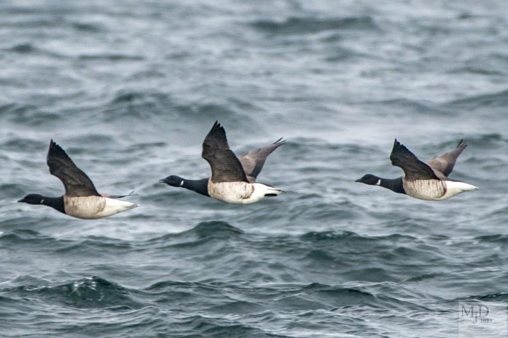 Rough winter North Atlantic waters don’t seem to faze our winter visitors. Although not many are as daring as the Harlequins and stay away from the rocky shore. But there are exceptions. These Brant flew by as they looked for some calmer water. These geese are smaller and a bit more well behaved than their noisier and more aggressive cousins, Canada Geese.