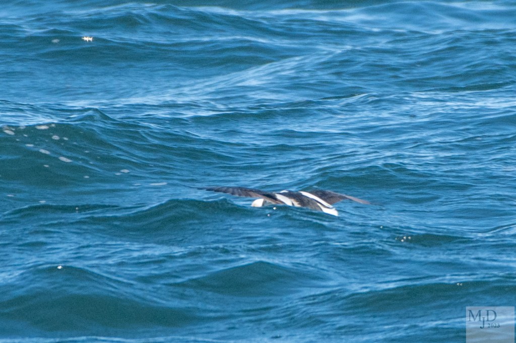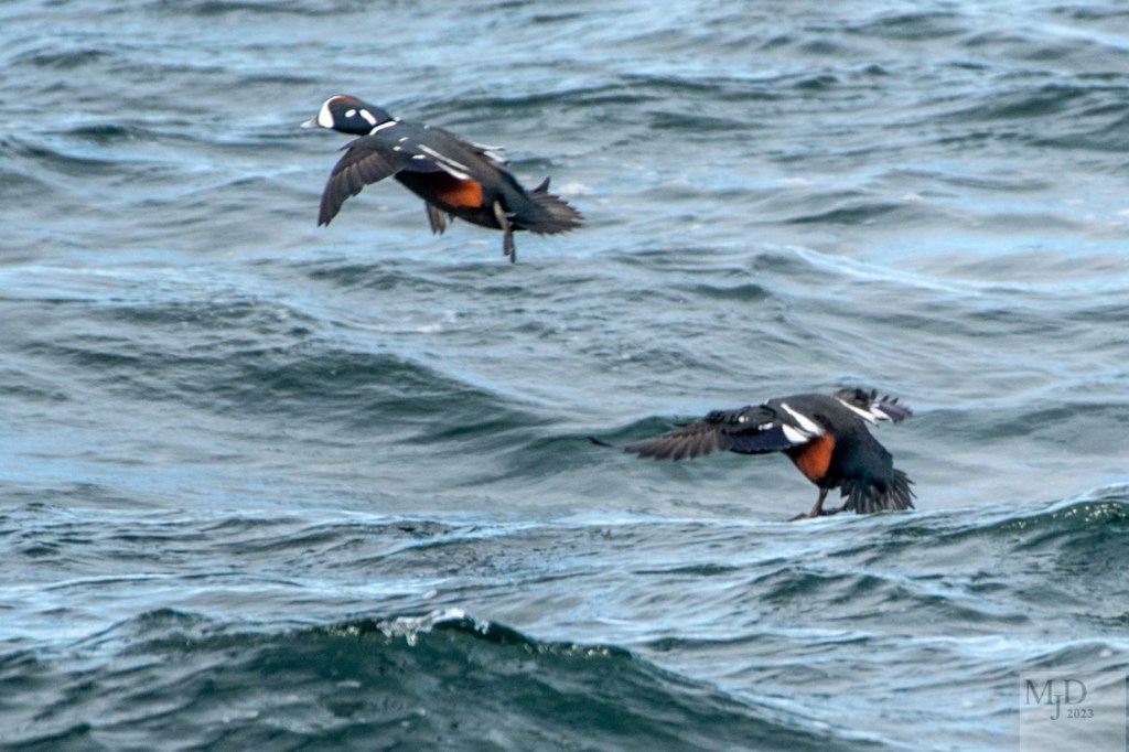 My last post showed Harlequin Ducks in a heavy surf close to shore. Lots of other ducks weren’t deterred by large swells and choppy water. They just stayed further away from the rocks than the crazier Harlequins.