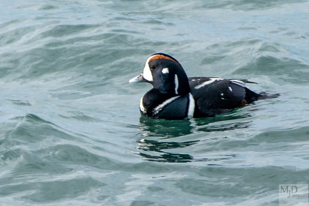 The Harlequin Ducks were doing their daring dives at the very edge of the rocks. But this male was taking a break a bit further from the shore.