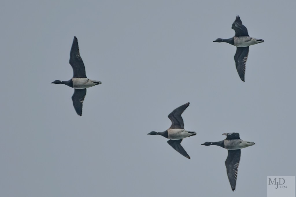 We spotted several large flocks of Canada Geese on the move and one smaller flock of Brant as they flew overhead on a gray March morning.