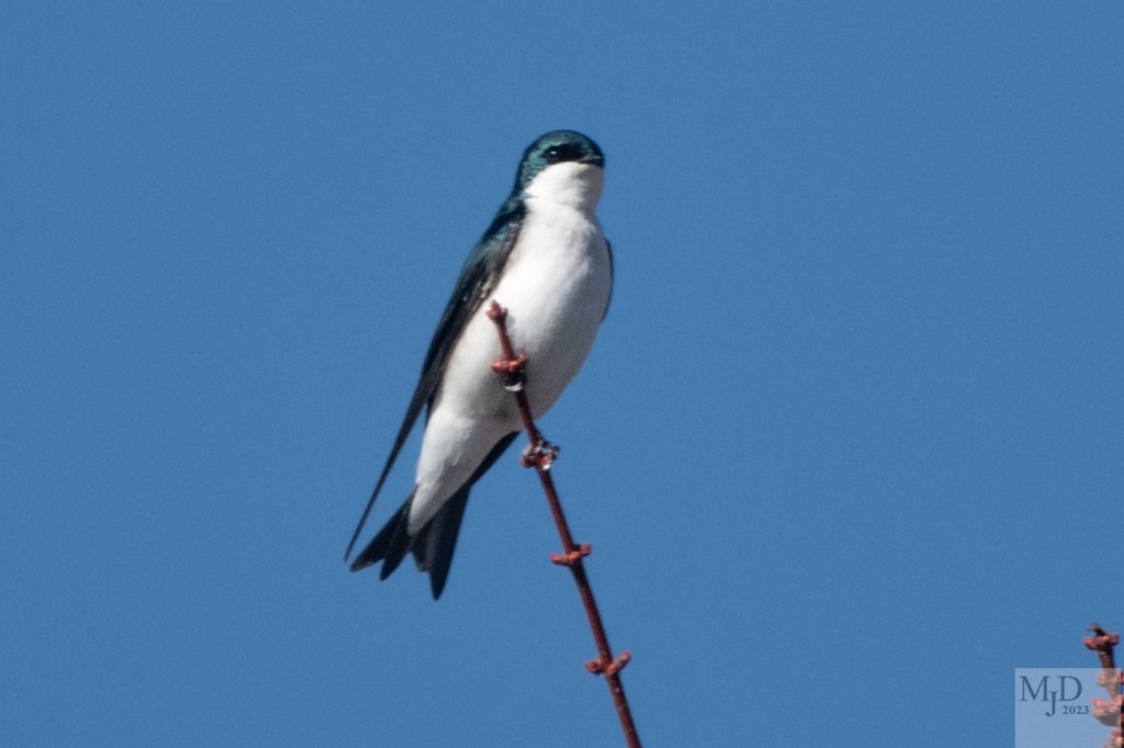 I am starting to see a few of the birds that reside here in the summer returning from their winter “vacations”. One early returnee is the Tree Swallow. They arrive fairly early, which is odd since they are primarily insectivores. But they are also able to dine on fruit and seeds so they can make through any late cold snaps where other swallows and flycatchers would find themselves in serious difficulty.