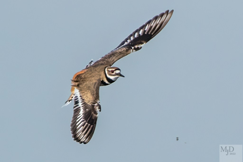 The Killdeer is a type of plover. It’s a shorebird that actually doesn’t go to the shore. They are common on inland fields and mudflats. They are permanent residents ranging from the middle of the US into Mexico. The population sort of shifts to expand into the northern US and Canada in the summer while shifting south to Mexico and Central America in the winter.