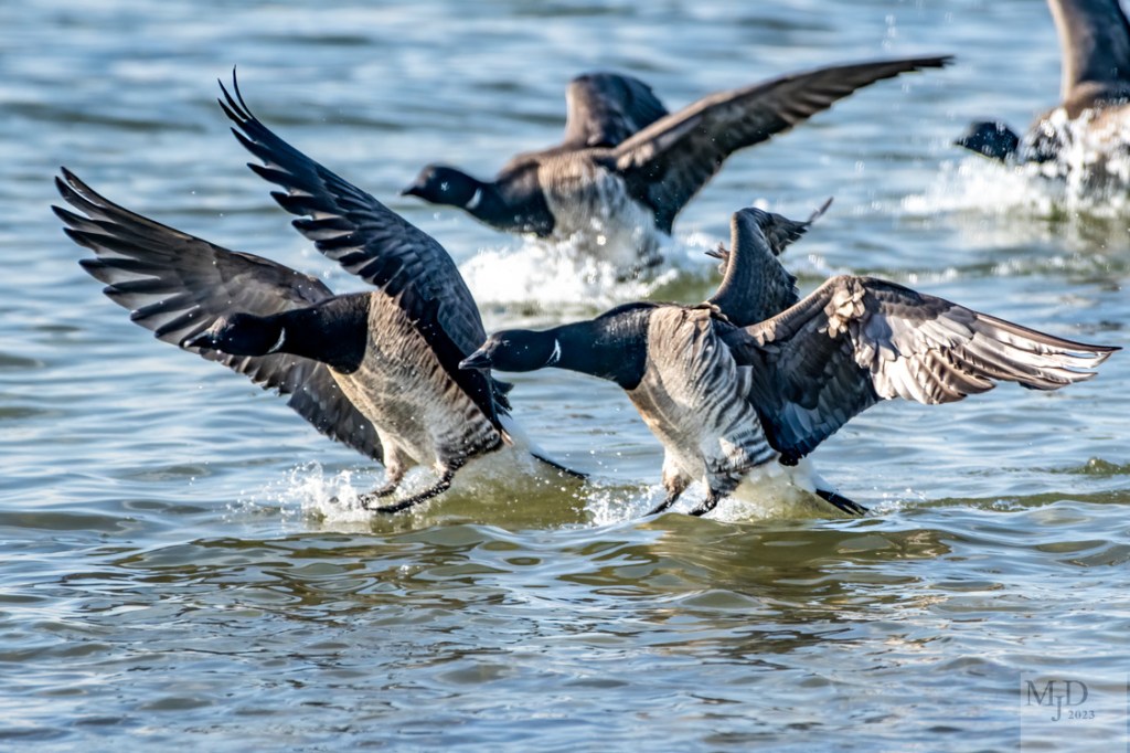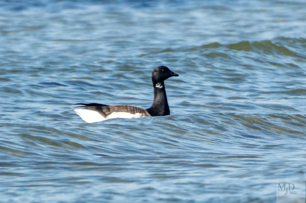 Brant are small, compact geese with a relatively short neck and stubby bill. One of the three subspecies winters on the US east coast from North Carolina to Massachusetts. This same subspecies winters in Ireland, England and the northeast coast of Europe. The black Pacific subspecies winters along the western coast of North America down to Baja California. The third subspecies winters in Japan, Korea and the coast of China opposite Korea. All Brant breed in wetlands along the Arctic coasts of Canada, Greenland and Siberia. Our eastern US subspecies migrates along a fairly narrow route that follows both sides of the Hudson Bay and then splits into two with one group continuing to the eastern Great Lakes and through New York to the coast. The other heads east to the Gulf of St. Lawrence and then follows the coast south. These are the ones we see each winter.