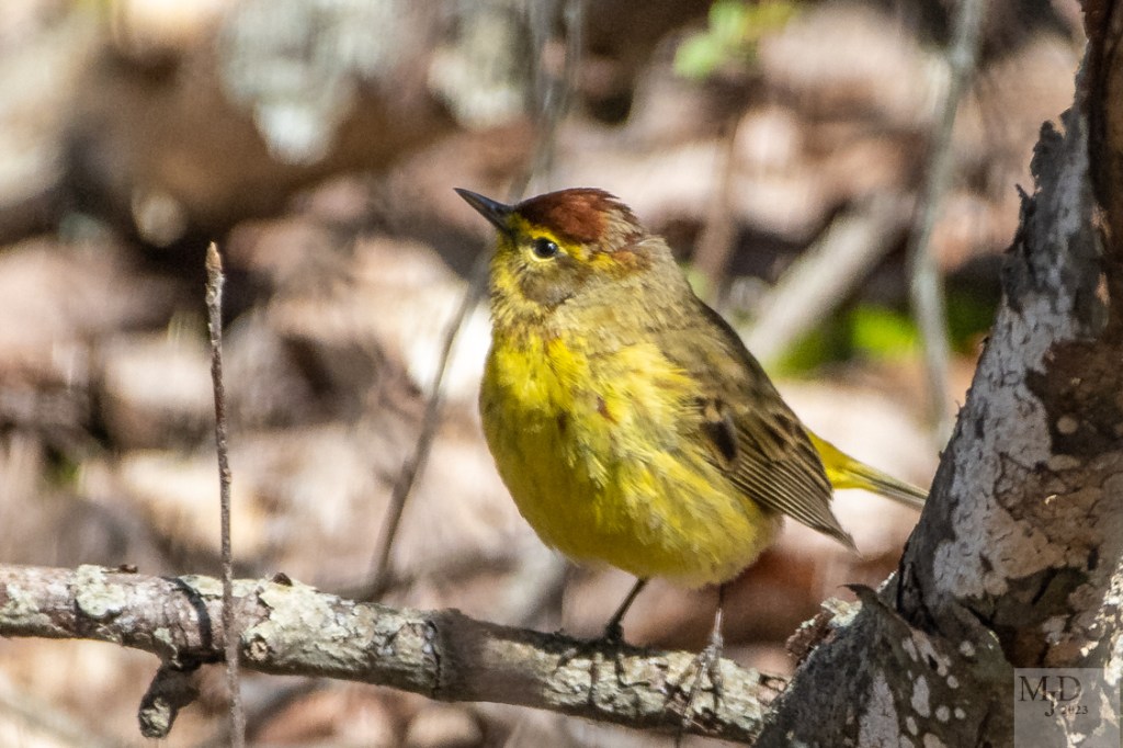 Palm Warblers migrate through our area in May as they head to their breeding grounds in Canada that stretch from Alberta to the Maritimes. They only breed in the northern portion of Maine and the southern shore of Lake Superior in the US. They winter along the US coast from North Carolina to Texas, the Caribbean islands and part of Central America. (Note: I use the Cornell Labs site for my map information.) They are an olive-brown above and yellow below with some rusty striping. They have a rusty cap and bright yellow band above the eye. Unlike most warblers that inhabit the canopy, Palm Warblers feed on or close to the ground. Like all warblers, they are very active and flit around in the foliage looking for insects. It takes a little luck to catch them in the open for a photo.