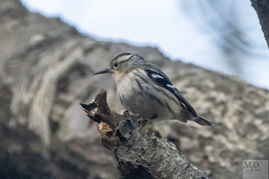 Who’s peeking around the tree limb? Unlike most Warblers who feed in the foliage, Black and White Warblers feed on the trunks and limbs of trees much like Nuthatches. This is a female. The males are much more boldly marked than the females.
