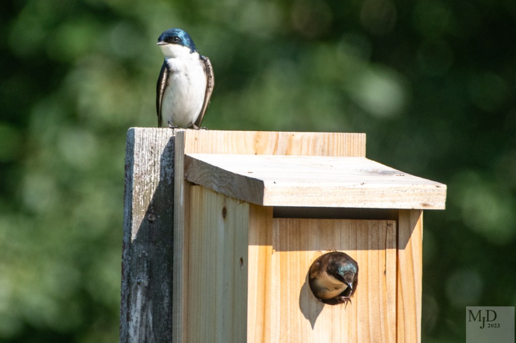A pair of Tree Swallows at their nest box: