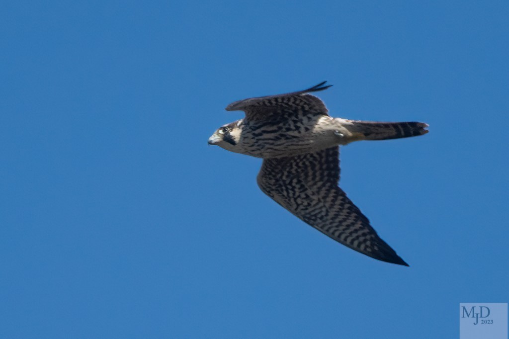 The second is more action than art. Another Falcon made a pass at a large number of shorebirds, most of whom took to the air and flew in a group evasive pattern called a murmuration. However, some birds dive under water rather than fly in order to avoid the predator. This photo shows the Falcon flying through the spray of water as a Lesser Yellowlegs tried desperately to submerge in shallow water. It couldn’t totally submerge of course, but the splashing water appeared to have thrown the Falcon off track.