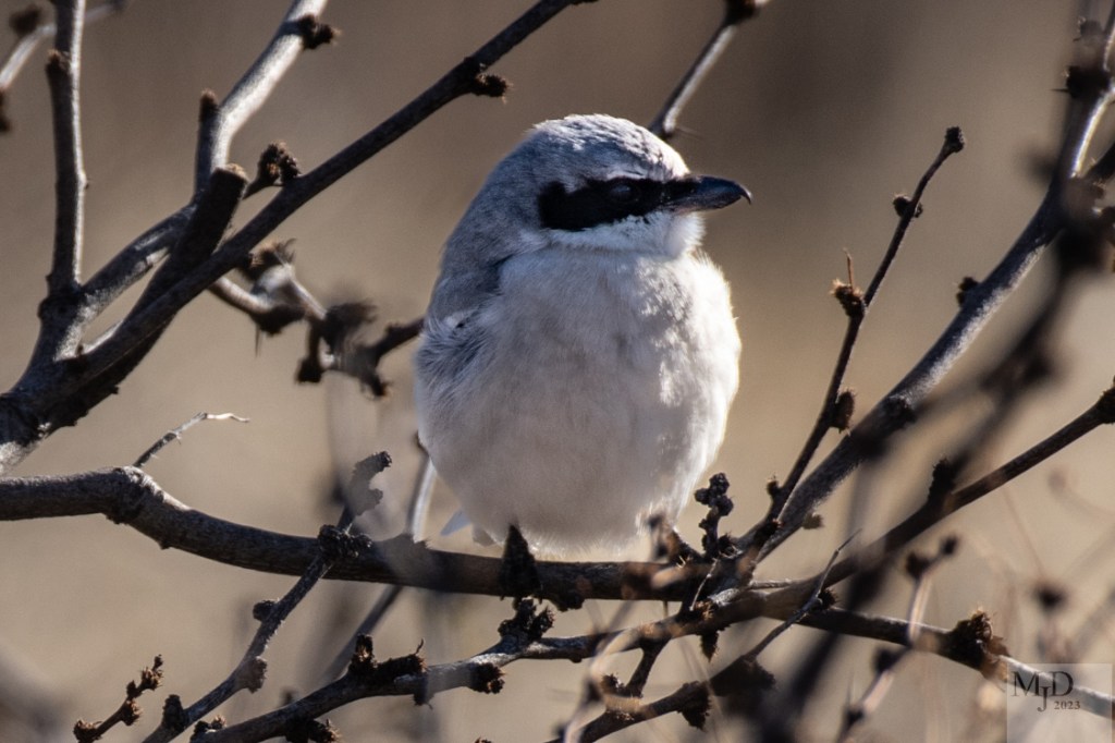What is that little songbird with the nasty looking beak? The Loggerhead Shrike is a passerine that aspires to be a raptor. It preys on insects, birds, lizards, and small mammals. Lacking the talons of a true raptor, the Shrike impales its kill on barbed wire or thorns. This gruesome habit earned it the nickname “Butcherbird”. Only that hooked beak gives away its predatory nature.