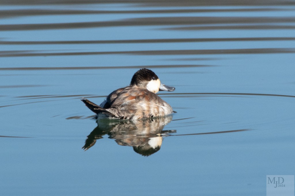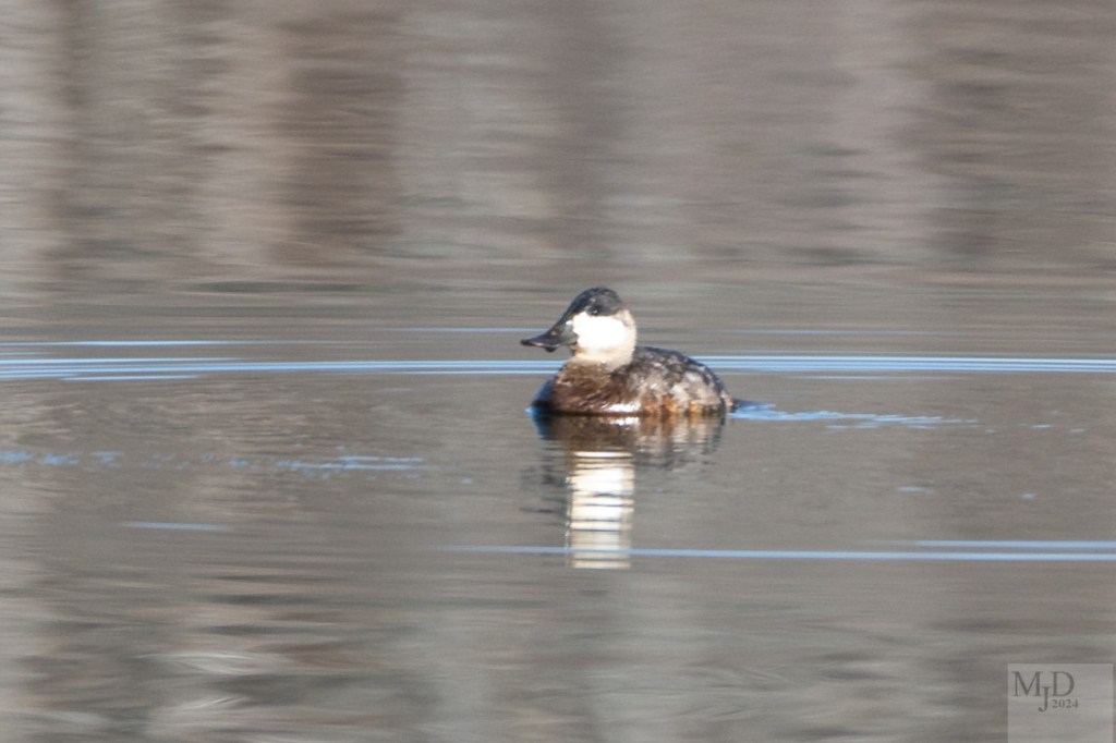 Ruddy Ducks are a small freshwater diving duck with a scoop shaped bill and stiff tail that is often held upright. Males have a bright white cheek patch. They take on a chestnut color in the summer. Only a little bit shows here and there on these photos of males at this time of year. They are migrating out of their wintering grounds here on the east coast and heading for their breeding areas around the Great Lakes. They also have a very widespread breeding area in the western US and Canada.