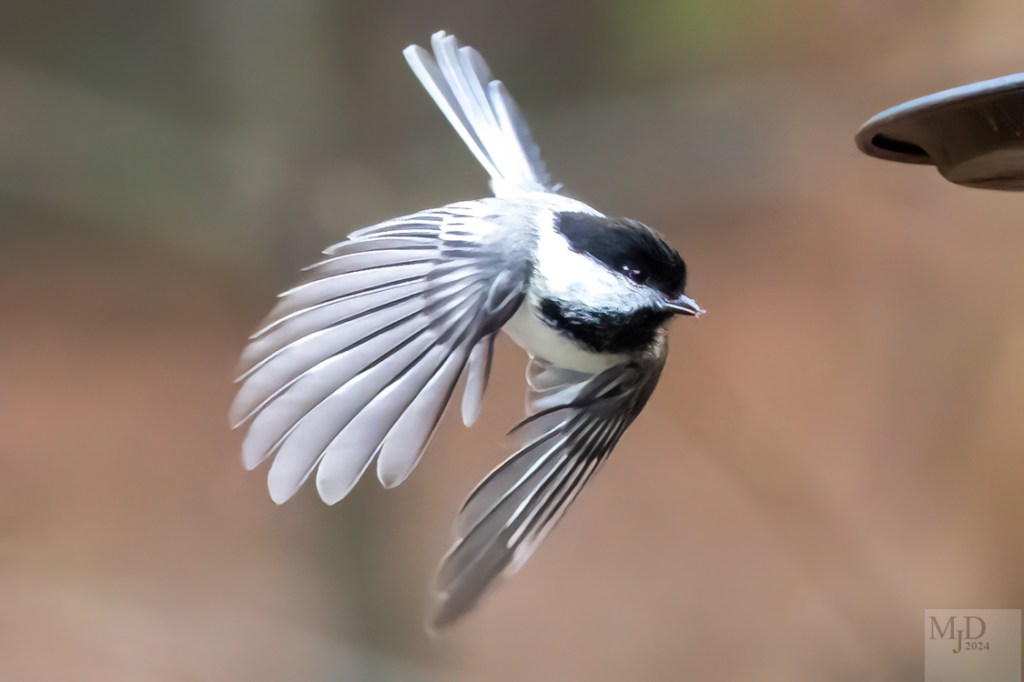 I try to catch birds in the midst of their constant activity. It’s a challenge but a picture of a bird in action is worth the work. I’ll share shots I like as they come along and hope that you like them too. First up is a Black-capped Chickadee. I managed to catch one of my favorite birds just as he took off from a feeder.