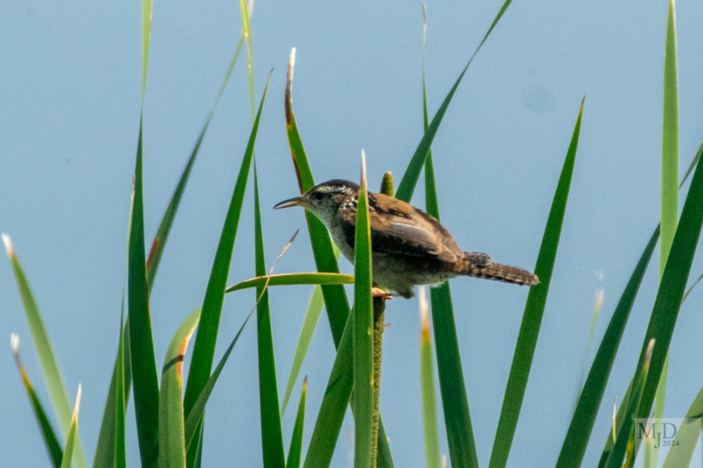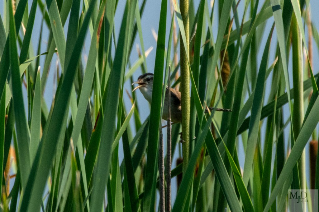 But every once in a while you get an individual that decides to go to the top of the reeds to proclaim his territory. This gives a rare look at the full bird. That is definitely the beak and short tail of a wren.