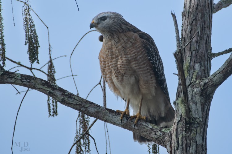 This is one of five subspecies of Red-shouldered Hawks in North America. This form, extimus, is found in southern Florida. It’s color is much more pale in the head and breast than in the other forms. Photo taken in Corkscrew Swamp near Naples Florida in 2023.