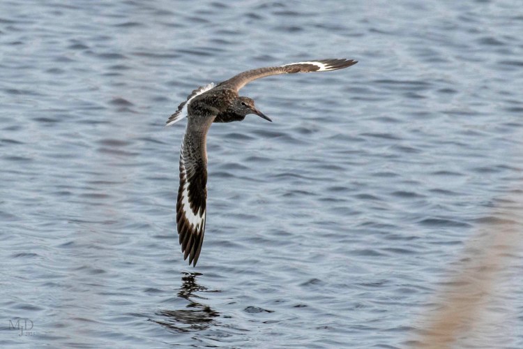 A Willet almost skimming the water as he approaches the pond’s shore. The white on the wings and tail are only visible while a Willet is in flight. Otherwise they are a drab looking bird that is almost invisible in the brush.