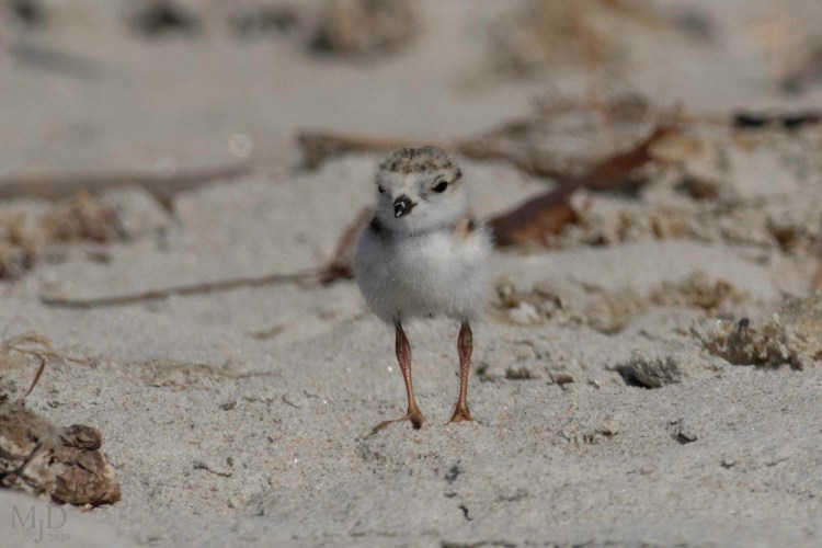 Piping Plovers have been nesting in the usual spots near me and the chicks are out and about. They have a high cuteness rating and look like cotton balls with legs. Their coloration blends in with the sand when they are still. But they aren’t still very often. They are precocial and can walk within several hours of hatching. They start running around soon after that. The adults continually try to keep them from straying into trouble. Here are a few photos of chicks plus one of a harried adult.