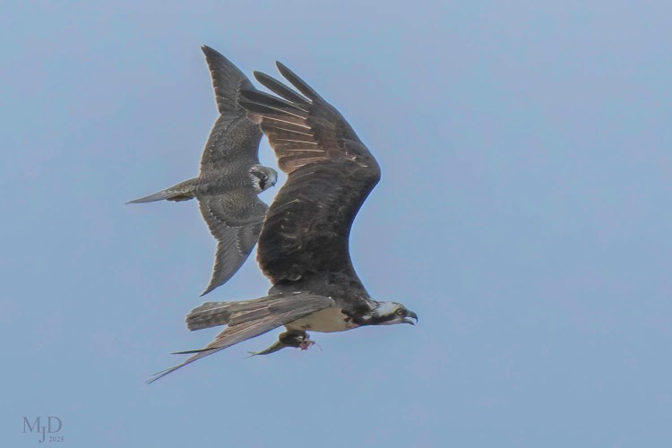 Another photograph of a Peregrine Falcon escorting an Osprey from its hunting grounds. Part I was posted previously.