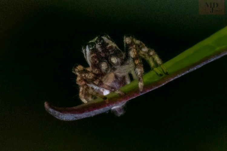 This is actually a tiny spider but it looks pretty ferocious in a close up. The second picture has a definite Halloween vibe.
