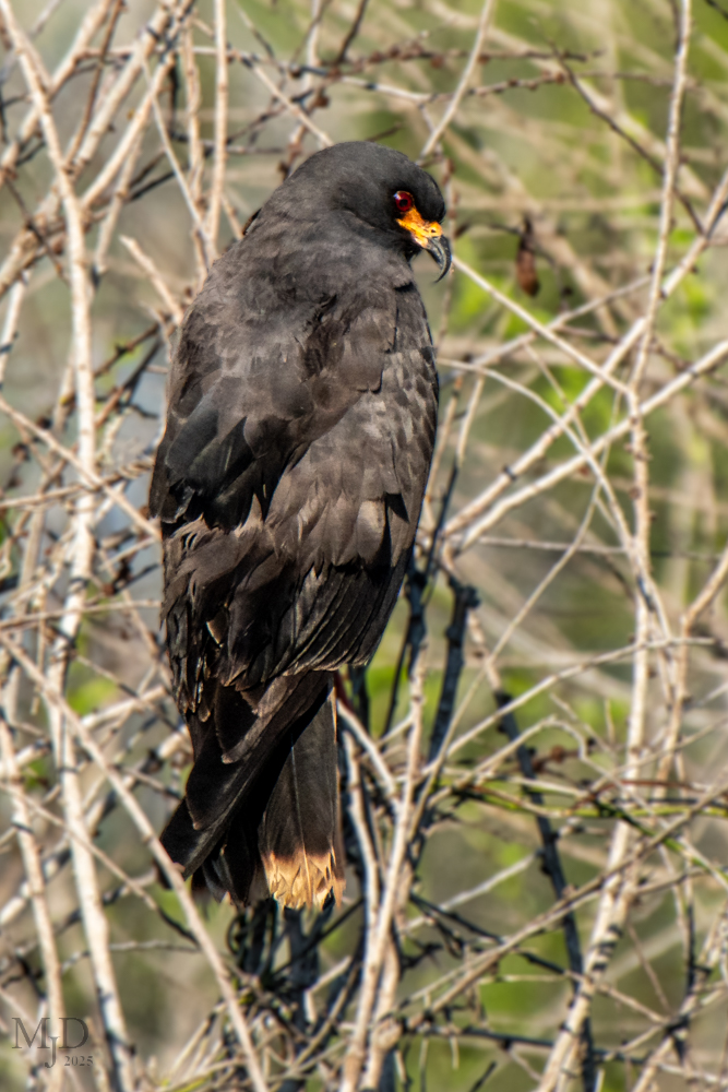 Snail Kites are a Central and South American raptor that are only found in North America in Florida. That long hooked upper beak allows them to dine on the large apple snails that almost exclusively make up their diet.