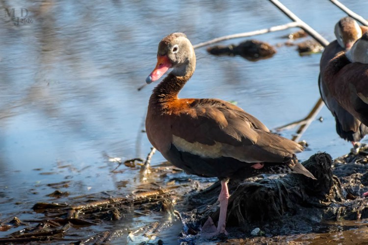 Black-bellied Whistling Ducks are native to Central and South America. They have expanded their range northward and can be found in some of the Gulf Coast states. The pink bill and long legs are two noted features. And yes, they do whistle.