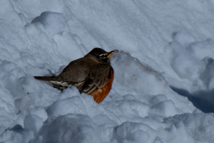 My recent posts have been photos from Florida where I traveled to visit with family. New England has been dealing with a very cold and snowy winter and photo ops have been limited here. This American Robin represents all of us long suffering New Englanders. But don’t worry about him. There were plenty of fruit and berry trees and bushes nearby so he won’t starve. Robin populations shift southward in the winter so this bird is probably visiting Massachusetts from northern New England or Quebec .